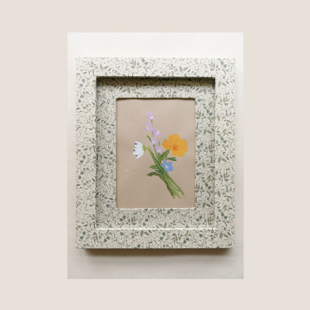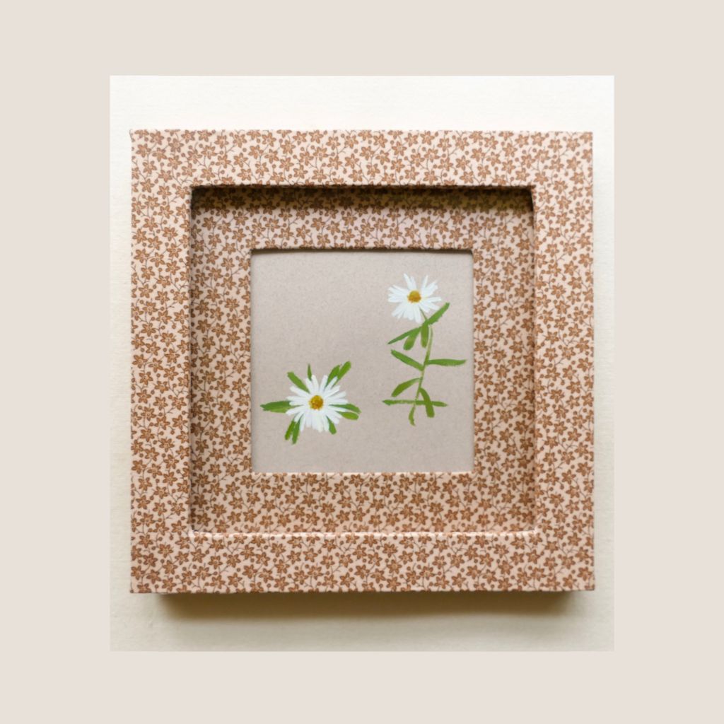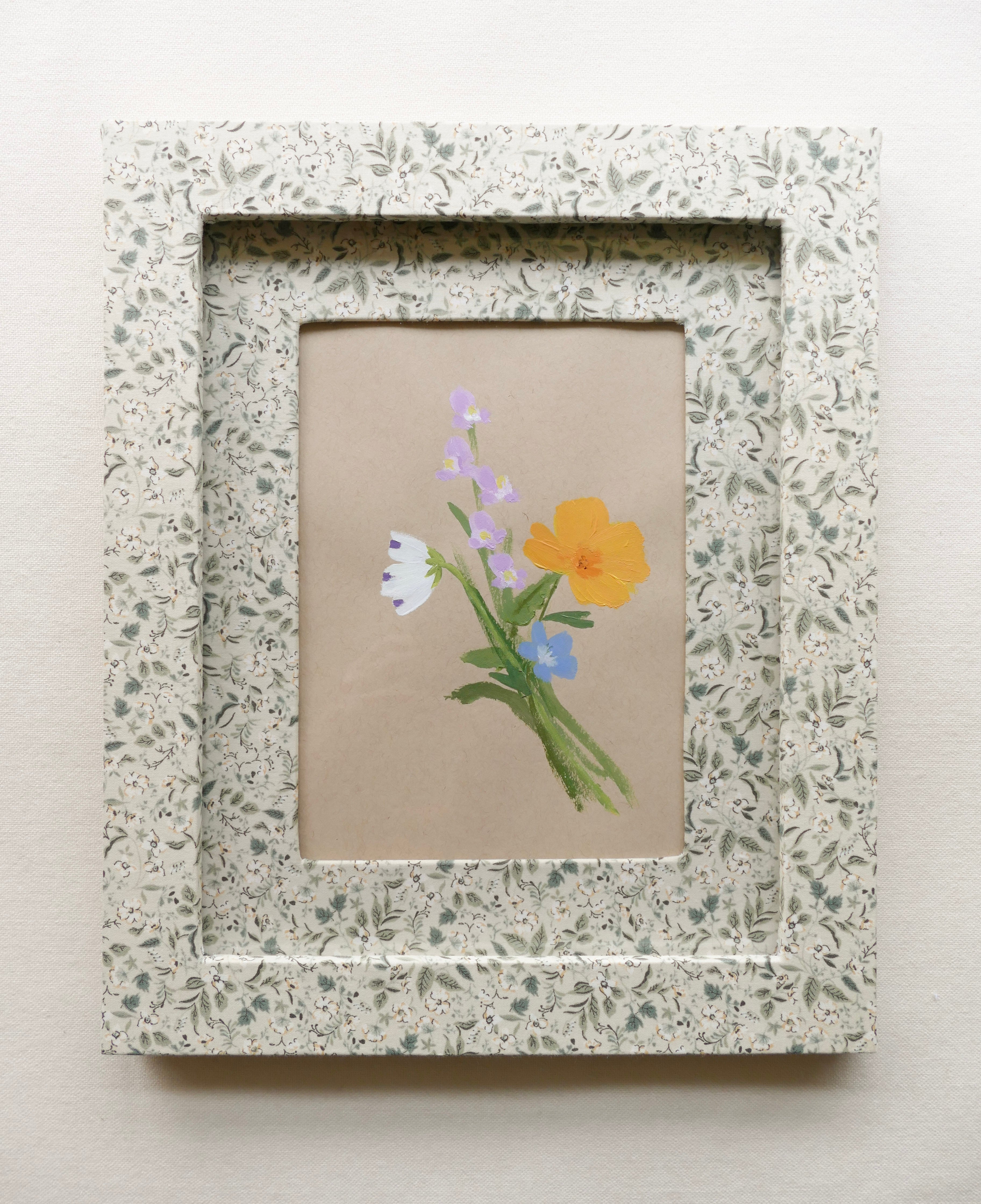 A mixture of handmade fabric wrapped frames, vintage wood frames and a few unframed works. Each original will come with a fine art print of the compiled scanned and pressed references that served as the inspiration for these works.